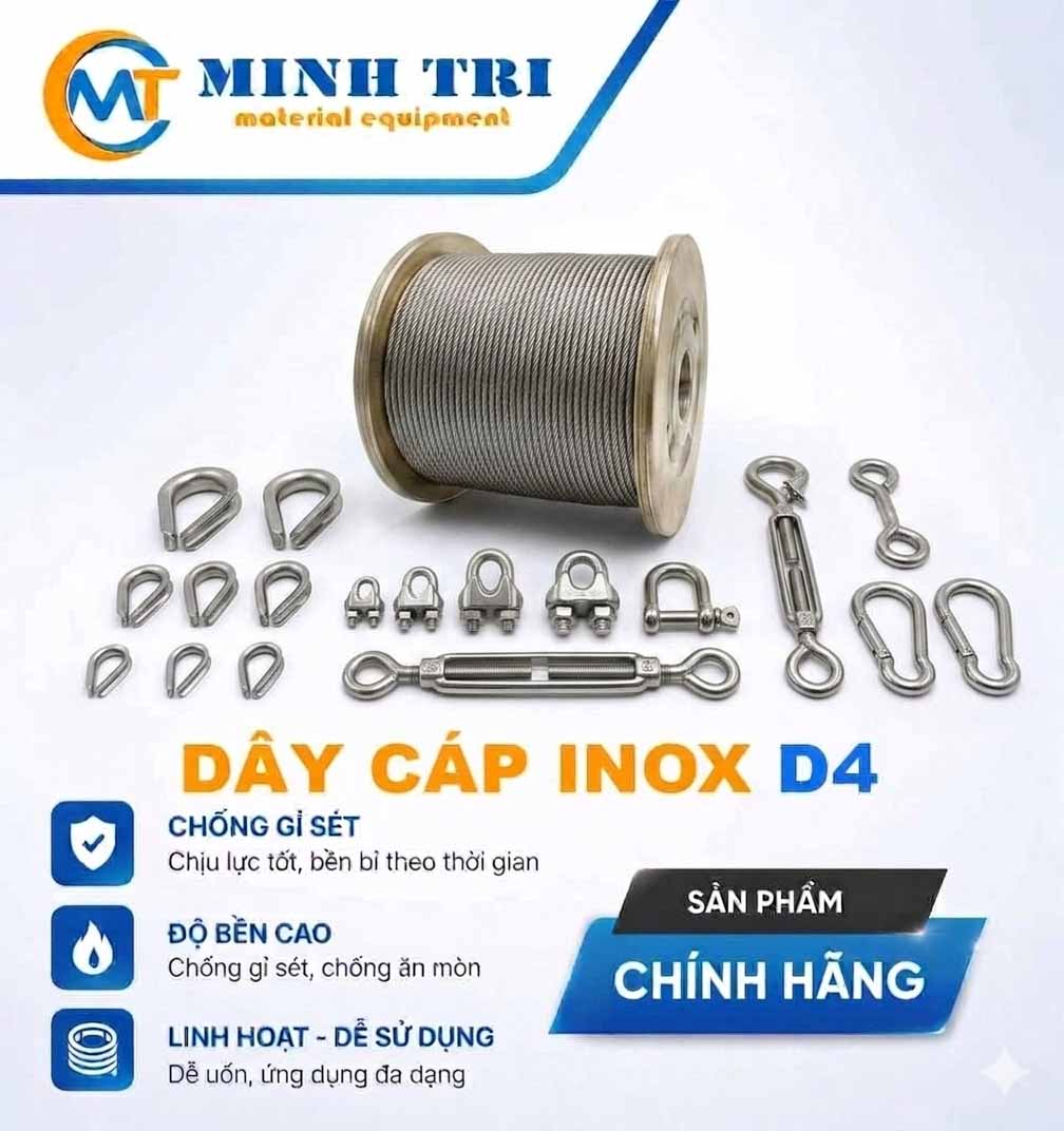 3. Thông số kỹ thuật cáp thép inox D4( cáp inox 4mm)
