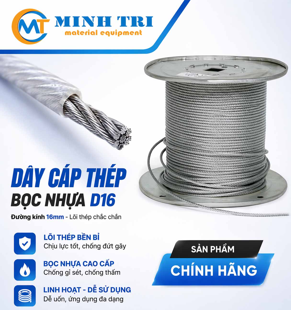 Cáp thép bọc nhựa D16 – cáp bọc nhựa D16
